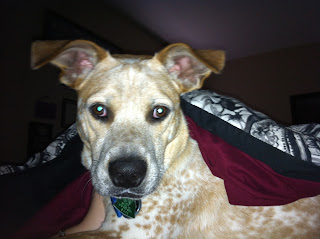 I am a MOMMY! I now have a canine child named Hank. He is a red merle heeler and is precious. He likes to eat ice cubes and peanut butter and loves to nap. He is nosy as all get out and chases his tail constantly.